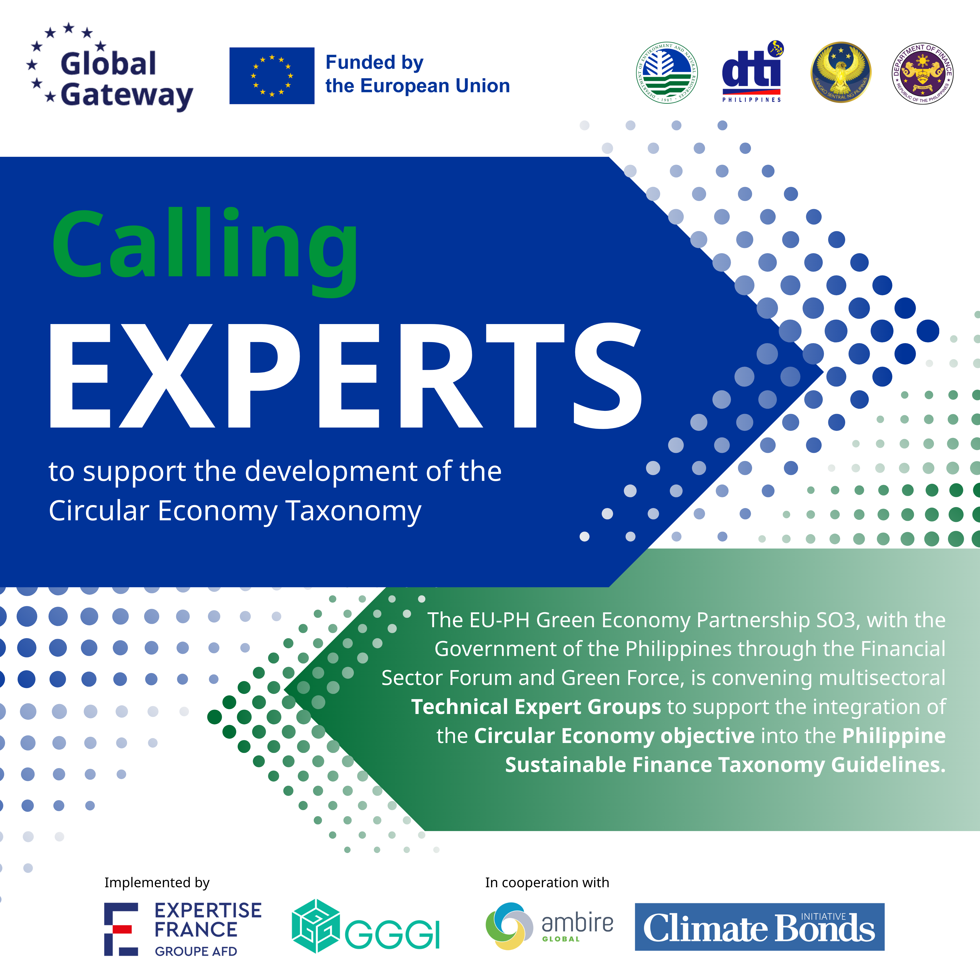Individuals with demonstrated expertise in their respective sectors, a strong grasp of Circular Economy principles, and knowledge of sustainable finance are highly encouraged to apply. Once selected, the Technical Expert Groups members will play a key role in shaping technical criteria, ensuring alignment with national policies, and contributing to the achievement of a credible and actionable green finance framework.